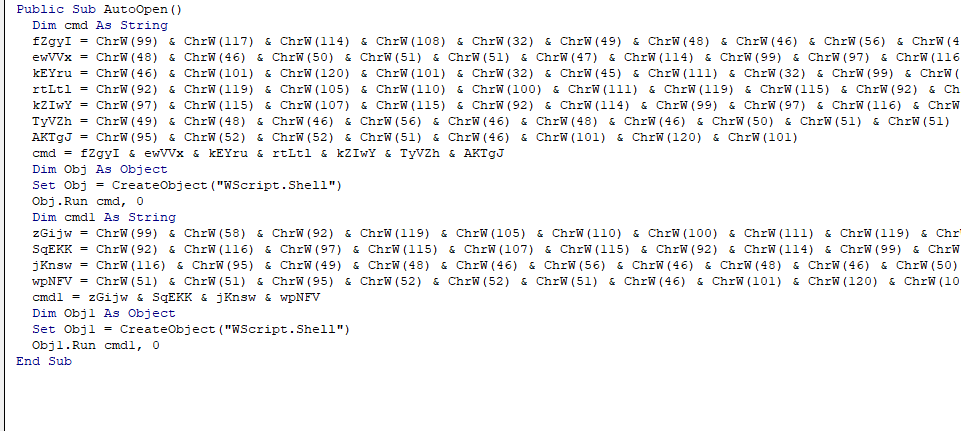 However, the initial payload didn’t execute remotely, possibly due to issues with O365. Therefore, we installed Word 2016 and rewrote our obfuscated payload generated using https://github.com/metac0rtex/Office-Macro-Generator/blob/master/macro_create.py.