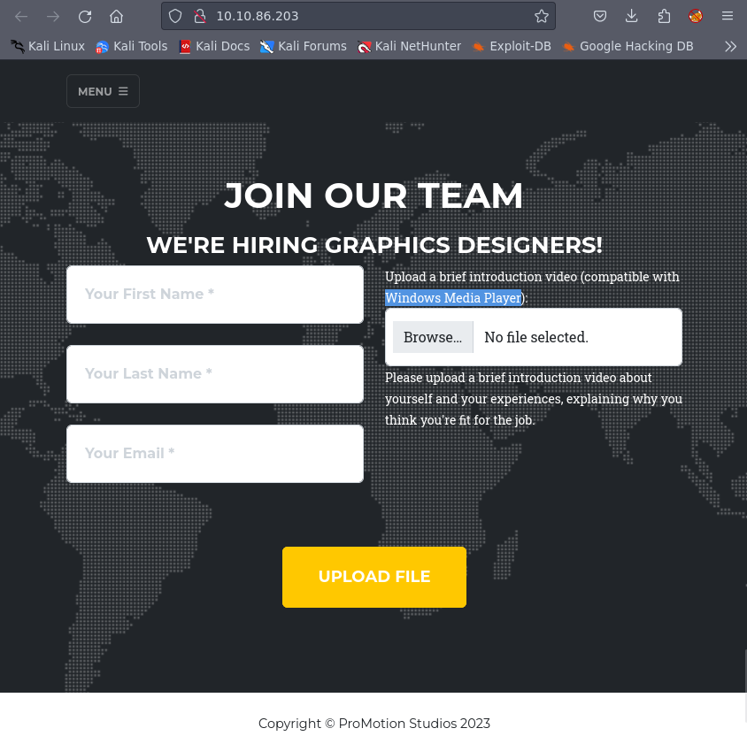 On the webpage, we can see that it has a contact form to join the team, where we can submit a video and apparently someone will review it: