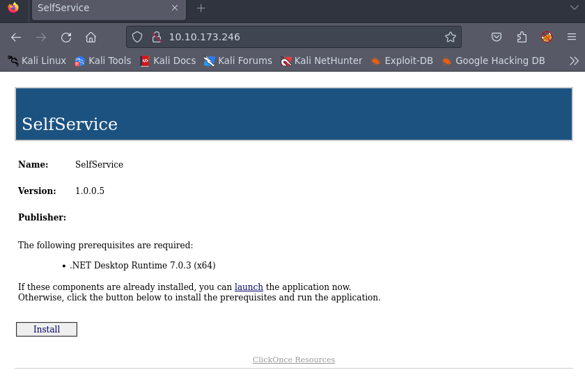 SMB 10.10.173.246 445 MS01 wwwroot READ,WRITE clickonce application dev share