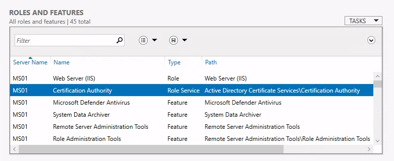 We can see that MS01, is indeed a CA, which means that we can request certificates and pretty much whatever we want on the domain.